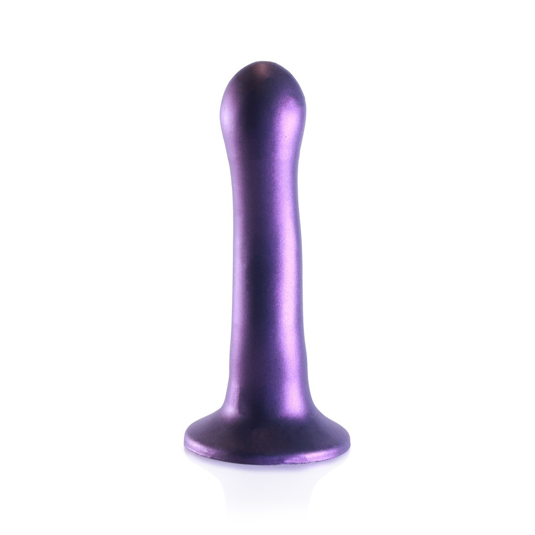 Ай! Премиальный ультрамягкий фаллоимитатор Curvy G-spot, изготовленный из жидкого силикона с прочной присоской и элегантным металлическим цветом.