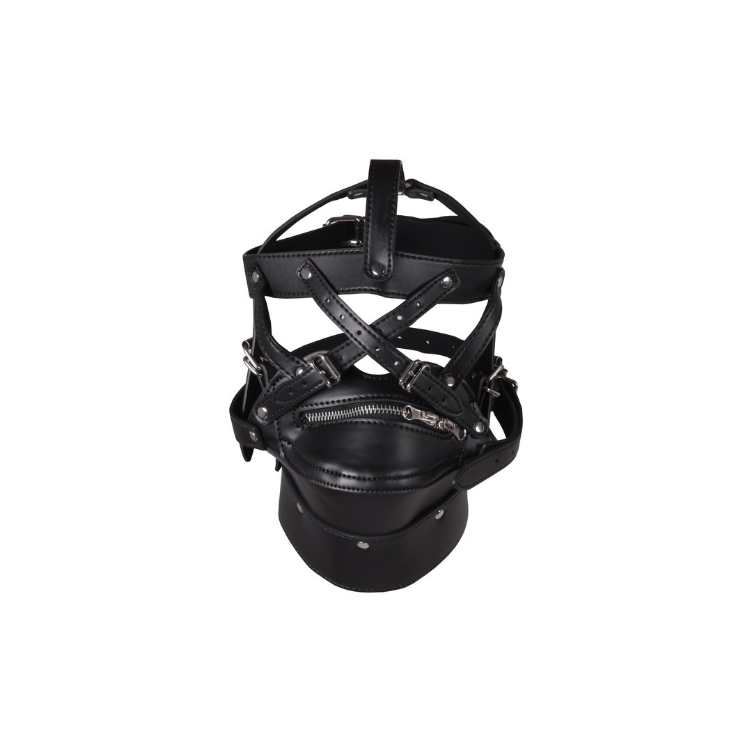 OUCH! HEAD HARNESS WITH ZIP-UP MOUTH AND LOCK BLACK