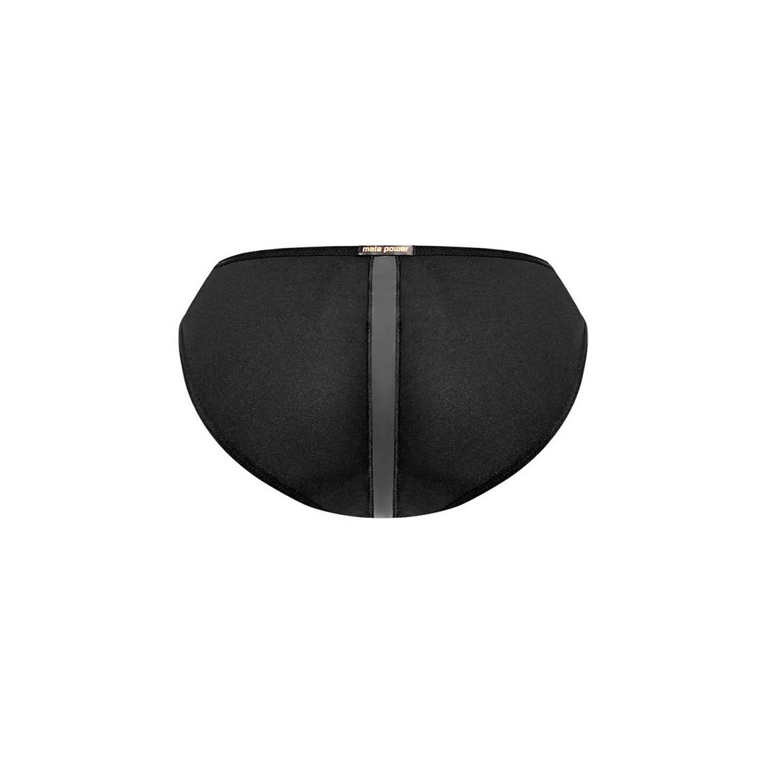Бикини-брифы из коллекции Landing Strip от Male Power имеют тонкую плюшевую эластичную отделку на талии и ногах, вставку в тон матовому ониксу через подкладку и сзади, а также декоративный металлический лейбл бренда на заднем поясе.