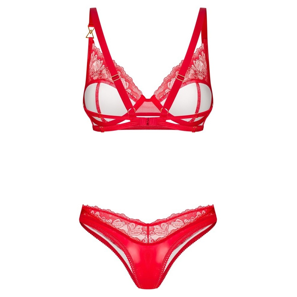 Сексуальный ярко-красный материал с кружевом! Комплект Aliosa от Obsessive состоит из бюстгальтера с заниженной талией и стрингов. Комплект выполнен в соблазнительном стиле и чувственном красном цвете.
