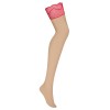As meias Cupide Desir são de cor nude, têm uma renda vermelha elástica na parte superior. Também são muito macias e sedosas.