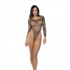 Выделитесь из толпы в этом боди из сетчатого трикотажа с длинными рукавами, украшенном ослепительными стразами, сияющими со всех сторон.